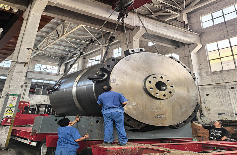 柱塞:直径1980mm总长3680mm,总重51吨,整缸装配成品重约170吨。