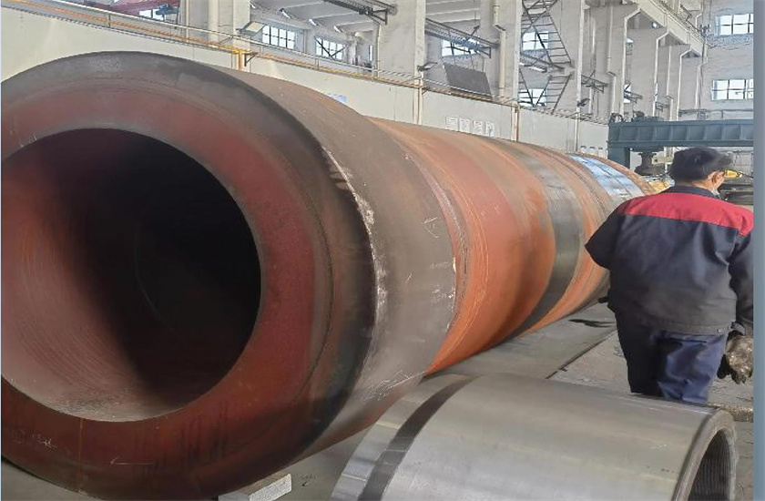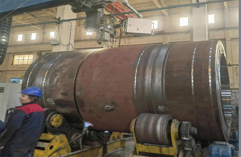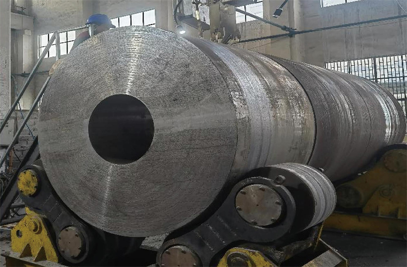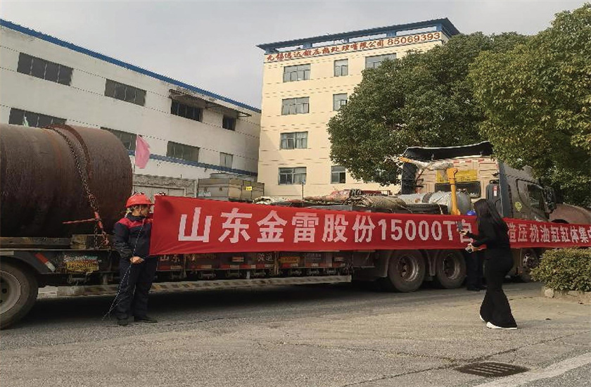 展图为我司为山东金雷股份15000T自由锻压机油缸,此度设备采用一支主缸加两支侧缸组合模式,缸体材质为35#钢,重达70.6T,内径1290mm,外径1820mm,总长6260mm.日前该设备正在安装调试中……