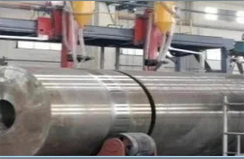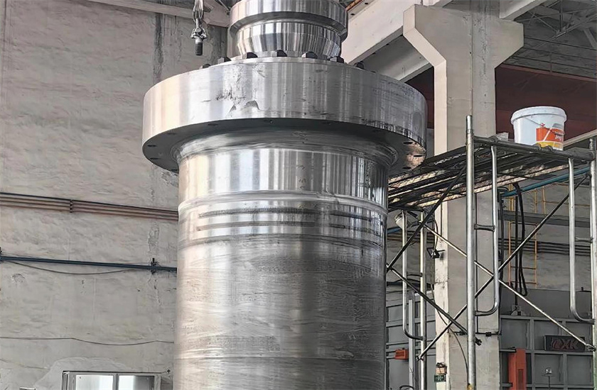 展图为我司2023年为太重集团(天津)滨海重型机械有限公司定制的50Mn卧式挤压机主缸,缸筒自重46T,柱塞自重26T,缸筒及柱塞均采用整体锻造工艺,柱塞表面堆焊不锈钢,目前该设备正常使用。